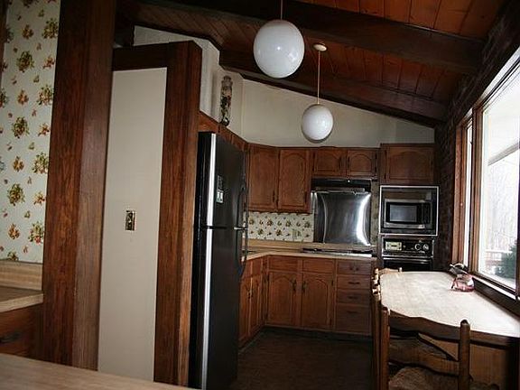 Youll fall in love with the spectacular views offered from the secluded deck of this raised ranch style home. The open floor plan offers a great space to entertain around the double sided wood burning fireplace open to sunken den and family room. The family room offers a little more privacy and boasts not only the fireplace but a full wall built-in bookcase, perfect for enjoying a cozy evening with a good book. The master bedroom has its own bath and dressing room along with doors leading to the deck. There are three additional bedrooms and a full bath as well. Laundry area is in basement along with Tandem garage, newer hot water tank and newer forced hot air system.OGM's convey with sale
