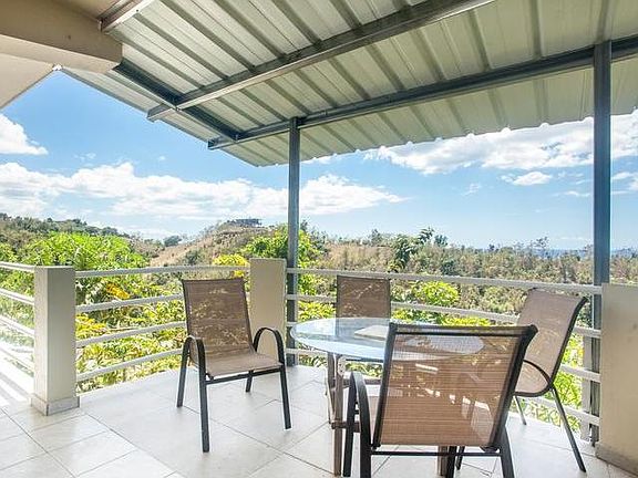 Top of the mountain with a panoramic view of the Caribbean with the best sunset view every evening. Overlooking cow dotted hills with breathtaking ocean vistas. Own 2,400 sqft of living space and enjoy the cool breezes of this mountaintop retreat. Great living space and opportunity for rental income were you can live in one unit and rent the others, or rent them all. Located on a dead end street, making it private and quiet, and with helpful and friendly neighbors, high above the town, close to the moon and stars. Between the 3 units, you will have a three bedroom floor with two baths and a big terrace, and two 2 bedroom apartments with great balconies with ocean views. For those who love gardening, there is plenty of garden area with fruit trees. The property also has parking for 5 cars and several storage rooms. Coordinates: 18.334930, -67.225126..