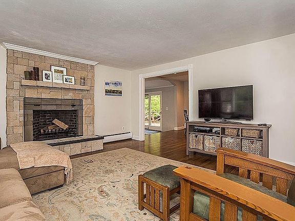 Situated on a private, tree lined lot and set above the street, this sweet ranch is the one you have been searching for! With easy access to schools, town center, the commuter rail, shopping and more, this is a smart buy. The sparkling newer kitchen offers stainless steel appliances, granite counter tops and a breakfast bar, open to the living room with gorgeous stone stone fireplace, dining area as well as the adjacent sun room. With sliders to the rear deck, this large, sunny open space is perfect for entertaining. Hardwood floors throughout, 3 good sized bedrooms and a well maintained full bath complete the main level. With room to expand, the lower level is awaits your vision. Media room? gym? home office? Your choice. The lovely, .62 acre lot offers plenty of privacy, space to play, garden and relax. Set up your fire pit and enjoy the summer evenings in your new home! This is a great opportunity to purchase a home with some upside potential in a hot market, don't miss out!