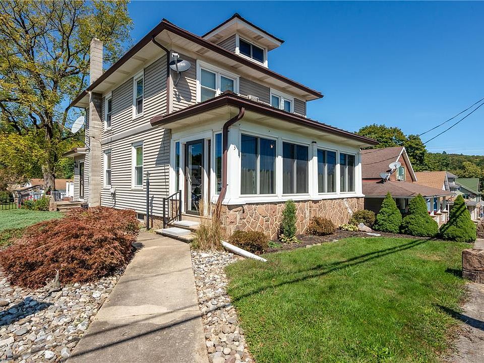 Welcome to this inviting and move in ready single family home! Step inside and you will find a custom built solid oak kitchen with breakfast bar and open concept floor plan. Separate dining area with beautiful oak woodwork throughout. French doors lead to your office, playroom or possible 4th bedroom along with a full bathroom located on the main floor. Large family room adjoins to a beautiful enclosed front porch with large windows, an abundance of natural lighting and hard wood flooring. Head upstairs and you will find a sizable main bedroom offering a 9x5' walk in closet, 2 additional nice sized bedrooms and a second full bathroom. Lower level walk-out basement with finished laundry room, storage and workshop areas. Automatic Generac Generator is a bonus!Outdoors offer beautiful Trex decking patio with room enough for grilling and entertaining 3 out of 4 seasons of the year! Large lot with outdoor utility shed and plenty of off - street parking. Call today for your private showing and make this beautiful home yours!