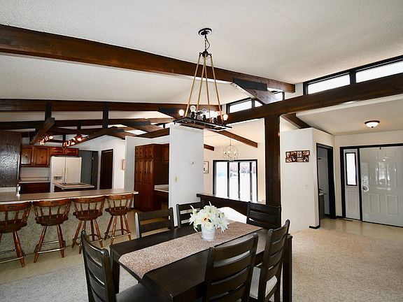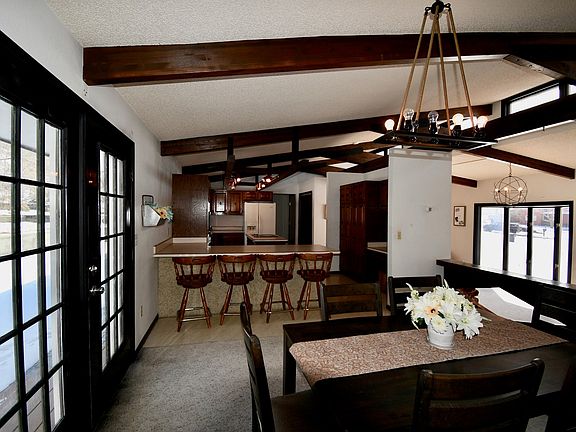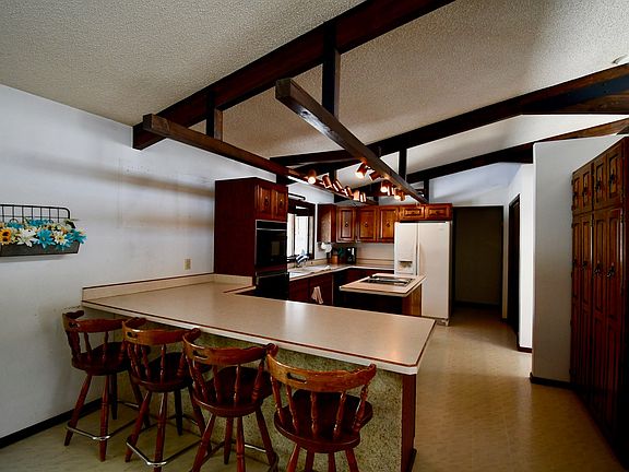 Here is a rare opportunity to live in this stunning home that stands out with its distinctive character from the rest. Bright, spacious, 4-bedroom, 3-bathroom, split level home in a cul-de-sac with 3,632 sq. ft. Upon entering the home, one is welcomed with a flowing and open living area, eye-catching exposed wood beams, floor to ceiling windows, a bay window, and a fireplace. The Bel Air Lighting chandeliers add to the ambiance of the home. The dining area has glass French doors to exit to the back of the home onto the patio. The main level of this home you have your kitchen and a large pantry, you may exit into your double stall garage from your kitchen. Upstairs there is a large bathroom with a large soaking bathtub, two large bedrooms and another set of French doors to your master bedroom suite and master bathroom. Downstairs there is a great room with new flooring, a wood burning stove, a bedroom, another bathroom with a shower, and a laundry room. Down to another level and you will find an abundance of an area for storage. The property sits on 16,084 ft with underground sprinklers. There is also an attached storage area next to the dog house.