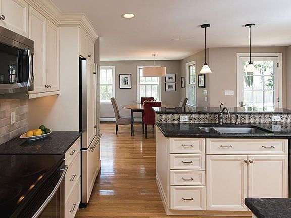 Tastefully appointed Cape Cod in one of Hinghams most-desirable neighborhoods, this cheerful home is beautifully updated and features an outstanding floor-plan combining quaint old charm and new lifestyle amenities. The open-concept kitchen with custom white cabinets and stainless appliances opens to a bright family room and has direct access to the fenced backyard with a patio and grilling area. Customized features include 2.5 well-appointed bathrooms, recently-built master bedroom with two large walk-in closets, built-in bookcases, wainscoting, fireplace living room, first-floor laundry, a mudroom with great storage and bonus lower level office & play area Located in the historic coastal town of Hingham and close to Hingham Square, commuter boat, train, bus, shopping & fine dining destinations.