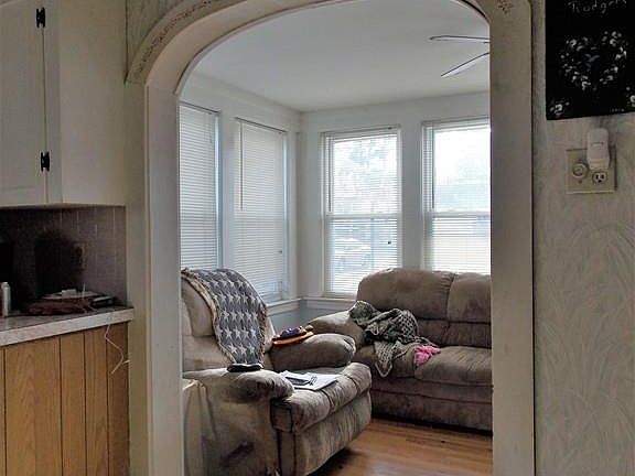 Bring your paint brushes and roll up your sleeves. Earn equity in this 1900 Colonial offering 4BRs ( 5th on 1st floor with no closet ), 1 1/2 baths. Roof on house updated about 10 years ago, circuit breaker panel, HWBB/oil heat~town water/sewer, all working utilities! Det'd 1 car garage ( roof repair necessary ) with attached carport, paved drive, off street parking for 3+ cars. Corner lot! Will not pass FHA, USDA or VA financing. Being sold "AS IS".