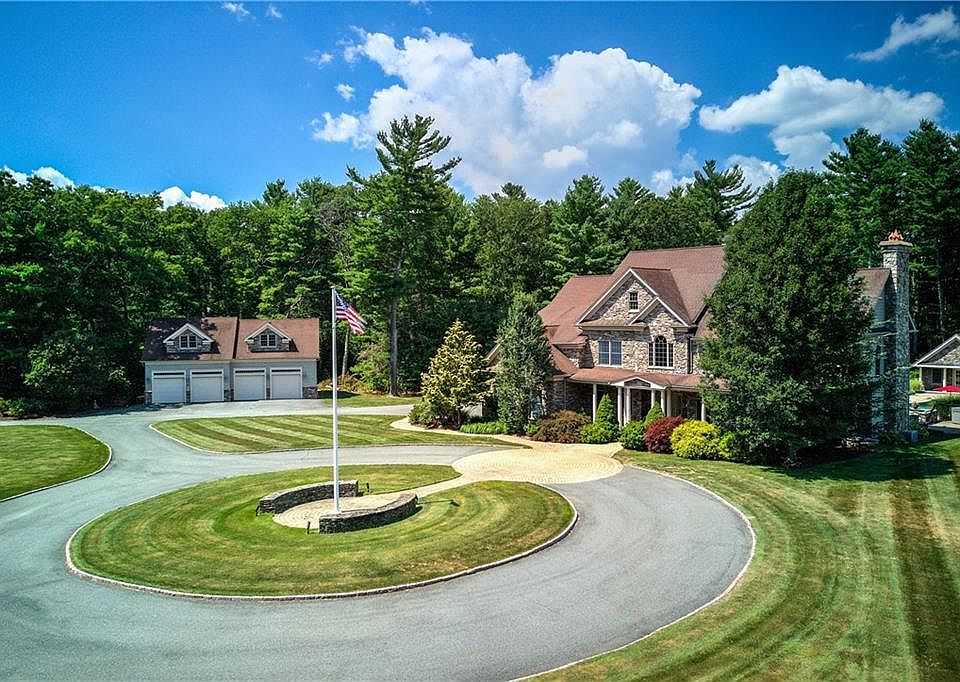 A winding driveway leads to this magnificent country estate situated on 20+ acres. This beautifully appointed 4 bedroom, 4.2 bath manor house offers the highest quality craftmanship & attention to detail throughout with coffered ceilings, sylish inlaid wood floors, lovely crown moldings & custom doors. Entering this exquisite home, there is a sweeping staircase with soaring ceilings. A spacious dining room and private office border the grand entry. The eat in chefs kitchen with stainless appliances & granite counters opens into a generous 2 story great room with an impressive stone fireplace, custom cabinety & picturesque views of the pool, outdoor kitchen & pool house. An oversized 4 season sunroom provides an abundance of natural light. The primary bedroom is a sanctuary offering its own stunning bath, 2 walk in closets, a sitting room with fireplace and peaceful, pastoral views. 2 additional bedrooms with walk in closets share a jack & jill bath & an ensuite bedroom complete the 2nd level. Other amenities include a finished lower level with bath, C/A, & 7 garage spaces. There is a beautiful 9 stall heated barn overlooking the grass paddocks, a matching hen house, a mirrored indoor arena & a 100' X 200' outdoor arena. This private oasis with its natural beauty and big sky views is a rare gem and ideal for the equestrian, car enthusiast or one who desires the luxury country farm experience. Easy commute to Prov, Bos, train & airport