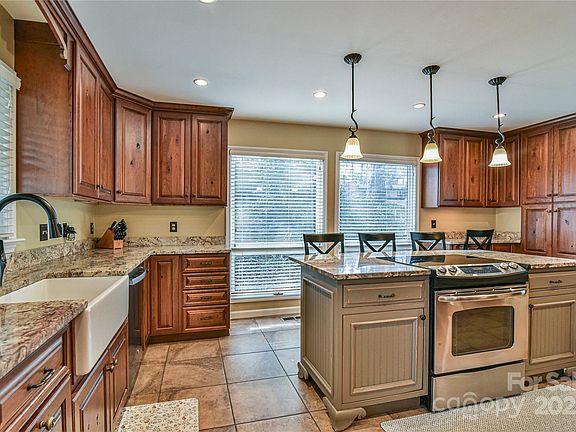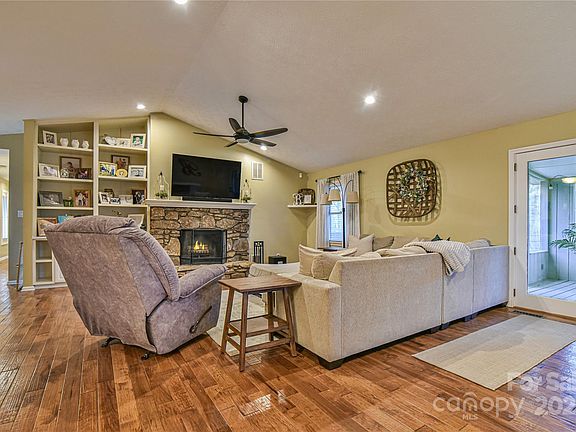 Fantastic 4-bedroom home that is ready for you to move into and enjoy. Home features a large living room with wood burning fireplace, built in book shelves and vaulted ceilings. The gourmet kitchen has a large center island, granite counter tops and connects to the formal dining room or to a large deck for outdoor grilling and dining. Main level also includes the primary suite with jetted tub and two other bedrooms. Lower level has a large family room, guest bedroom and a full bathroom. Enjoy the privacy of the wooded property, undamaged from the hurricane, from the screened-in back deck or in the partially fenced yard. Conveniently located near South Asheville amenities, this home is a must-see.