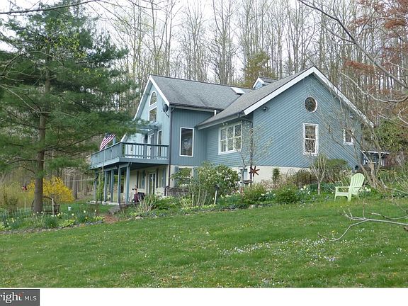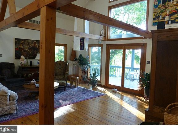 Set among the rolling hills of OJR SD, Warwick Twp, Chester Cty is a custom built, cedar sided, Post and Beam home in the Vermont Sugar-Barn style on 2.6 acres. Enter from the covered porch into a high ceiling Foyer w/Slate floor & pocket-door closet, turning into the stunning Great Room's post & beam open-concept living space. A cathedral vaulted ceiling w/fans, lg windows & skylights bathe the room w/soft light lead one to the deck doors to view the valley and hills beyond. This ever-changing seasonal landscape is a part of the home. Entertain under the Pergola on the 36x10 wrap-around deck. In winter enjoy the wood burning stove set on a brick hearth. On-site built wood floors are throughout the home as well as solid wood doors. The dining area w/your table & chairs will sit under the hand-made Black Bonnet Chandelier. The newly Updated Kitchen has exposed wood ceiling & beams, Pantry, white glazed custom Wellsford cabinetry, built-in Microwave, DW, Ex-Lg SS Sink set into a stunning Granite counter top, beautiful Glass tile backsplash lit with Under Cabinet Lighting and HAND-MADE tile floor. Maple honey glazed center island cabinetry w/gas stove & oven, lg granite extended counter sits under pendant base lighting. Walk up the site-built stairs and railings to the open loft complete with Cupola and views of the valley; a perfect place to Read, practice Yoga or home-based office. Completing this space is a walk-in storage closet (13x6). Off the Great Room is the Master w/walk-in Closet, Ceiling Fan, wood floors. Master Bath has wall mirror, walk-in Shower w/Pale Green Frosted Glass, ceramic tiled floors, skylight, & Custom Wellsford cabinets. Opposite side are 2 add'l bedrooms each w/dbl door closets & an add'l closet with shelving; one is complete w/full bath, wood ceiling, white dbl door cabinet and shower w/blue ceramic tiles to ceiling. A Studio is through dbl doors under an arched Stained Glass Window. Cathedral Ceiling, lg window, skylight, Built-in Bookcases, Closet w/built in shelves & a door to the wrap-around deck completes this room (could be 4th bdrm). Completing this level is a full bath with wood ceiling and stall shower. The lower level offers a FULL finished basement w/French Doors opening to the patio and gardens, a separate Laundry Rm w/lg closet and 2 storage rooms. There is an oversized 2-car detached garage & more storage in the 13x11 room at the back of the home. NEW Driveway 4/2018, Copper Gutters/Downspouts/Guards. Many updates.