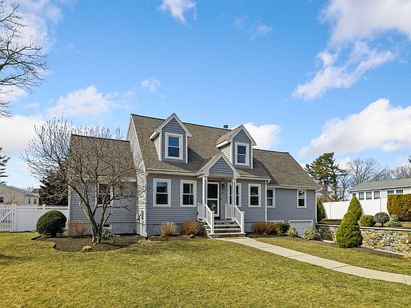 Charming custom built, expanded, 7 Room, 3 Bedroom, 4 Bathroom, well maintained Cape on a cul-de-sac near town and all major travel routes. Spacious, open first floor plan with a large family room, vaulted ceiling fitted walk-in closets, custom built-ins and lighted ceiling fan, huge eat-in kitchen, side Island, tiled backsplash, newer SS appliances, pantry closet and built-in, den with vaulted ceiling and built-in cabinet, chandelier, office, half bath and first floor main bedroom with full bath. Second floor has two large bedrooms with Jack & Jill bath lighted ceiling fans and walk-in closets. Finished basement offers additional living space with large playroom, lots of closets, one cedar closet and half bath. Newer windows, garage doors, Trex deck and patio, lots of improvements, AC and updated heating system. Fabulous lot and landscaping with Rain Bird sprinkler system, fenced yard and two car garage. OPEN HOUSE SATURDAY 4/1/23 & SUNDAY 4/2/23 FROM 1-3 p.m.