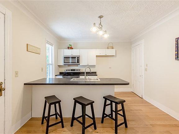 Beautiful Boston style unit in the lively south wedge! This apartment is the downstairs unit in this duplex. It features a large open porch with off-street parking and an in-unit washer/dryer. The contemporary kitchen includes a large breakfast bar/island, stainless appliances and amazing tin ceiling. This unit also features high ceilings, newer flooring (w/w carpets and hardwoods), and an updated bathroom. It will be available for annual lease beginning on 11/1/2022. Owner pays for garbage, plowing, landscaping,water
