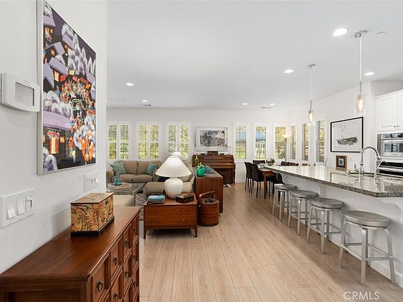 Welcome to this exquisite single-level home located in the much-desired Gated Community of Gavilan~Sendero in Rancho Mission Viejo. Beautifully upgraded Home nestled in a very private location, offering serene surroundings, and open floorplan. Step into the heart of the home, a chef’s kitchen boasting white cabinetry upgraded with pull-out drawers, granite counters, water softener and reverse osmosis system, and a sizable prep island illuminated by pendant lights. Upgraded stainless steel appliances stand ready to elevate your culinary creations. The kitchen seamlessly flows into the dining area and spacious family room, perfect for gatherings and entertainment. A slider door beckons you to the serene backyard, complete with a covered patio adorned with upgraded pavers, offering ample space for outdoor relaxation and enjoyment. Take in the lush green views and relish the privacy of the expansive backyard. Retreat to the primary suite, where luxury awaits with a large walk-in closet and a primary bathroom featuring cultured marble counters, a generous walk-in shower, and dual sinks. Discover comfort and convenience in every corner of this remarkable home. The secondary bedroom boasts a large closet for ample storage, while the secondary bathroom offers cultured marble counters and a Shower and Soaking Tub for added luxury. The third bedroom, or den, features custom slider doors, providing flexibility and style to the space. Your laundry room is equipped with cabinets and a sink, making chores a breeze. Park with ease in the attached 2-car garage. Throughout the home, enjoy upgraded flooring, custom window shutters, recessed lighting, and built-in cabinetry, adding both elegance and functionality. Within this 55+ Exclusive Gated Neighborhood, Experience resort-style living at The Hacienda, an expansive clubhouse offering a great room, bar area, and rustic hearth, ideal for mingling and socializing with various social clubs. Take advantage of community amenities such as a yoga studio, large fitness center, bocce courts, built-in BBQ, gardens, and a heated pool/spa. Rancho Mission Viejo also offers Tennis and Pickleball Courts. Embrace the lifestyle you deserve in this exceptional community.