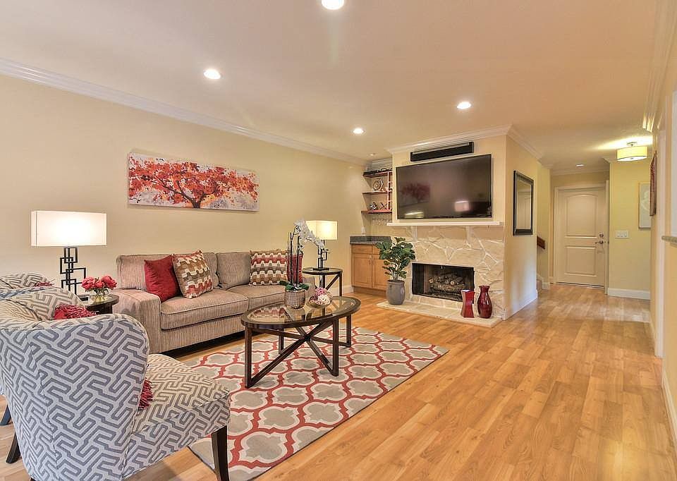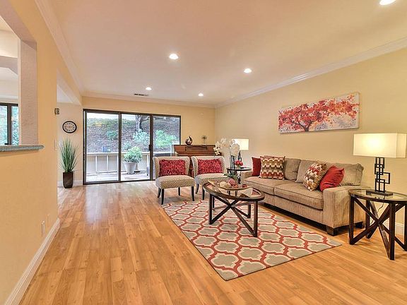 Updated End Unit Townhouse at Crestview Park in the San Carlos Hills. You will find may improvements throughout this comfortable home with wide open Living & Dining Rooms which lead to an inviting patio for year round outdoor enjoyment. The Living Room also has a gas log fireplace and wetbar. The remodeled Kitchen with granite counters, stainless steel appliances and decorative tile back-splash also flows openly to the Dining & Living Rooms. Perfect for entertaining and everyday living. The lower level also provides direct access to the 2 Car Garage, a remodeled Powder Room, Laundry Room and has laminate flooring throughout for practical use and a designer flair. Awesome Master Suite with beautifully remodeled Master Bath and wood burning fireplace. What a great everyday escape! Two addition bedrooms on share a Full Bath with Jet tub. The list goes on and on with crown molding and much more. Enjoy resort like amenities with pool, spa, tennis courts & Clubhouse. Welcome home!