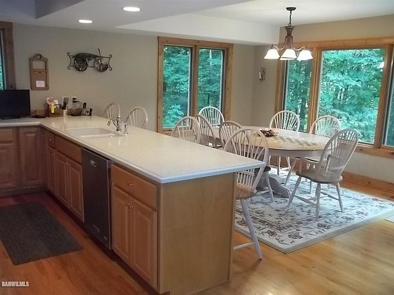 A serene private wooded cul-de-sac setting is the location for this warm and inviting 4 bed/ 4 bath home designed with many special features. After enjoying the relaxing covered front porch you enter into the homes great room which features eye catching lofted knotty pine wood clad ceiling, majestic limestone fireplace, oak site-finished wood floors and a cozy window seat. The kitchen has specialized wood accent ceiling, plenty of cabinets and hard surfaced counters. The adjoining dining area is light and airy with an abundance of windows. The location of the large screen porch makes it part of the main level living space and has an easy flow from living room, deck and dining area for easy entertaining. The main level also features a guest bedroom and bath. The upper level spacious Master suite offers great views, wood clad ceiling, walk-in closet, whirlpool, double vanity and walk in shower. Two additional guest bedrooms and baths are found in the walk-out lower level. The family room has an attractive wood paneled ceiling, fireplace, wet bar and access to the attractive stamped concrete patio with built-in perimeter benches. Other features of the home include: six paneled hard wood doors, knotty pine trim, skylights, tiled bath floors, paved driveway and brick walk. The furnishings can be easily purchased at time of closing on a separate bill of sale.