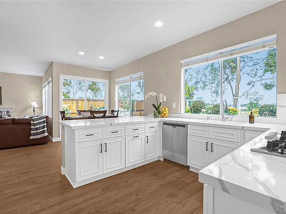 $1,324,999 or Trade- Welcome to this exquisite home in the highly desirable Mira Vista Tract of Rancho Santa Margarita. This beautiful property offers a comfortable and luxurious living experience. Spanning 2,411 square feet, this 4 bed, 3 bath residence boasts a thoughtful floor plan with 3 bedrooms upstairs and an additional bedroom/office conveniently located downstairs. The kitchen has been recently renovated and features upgraded cabinets and countertops, that seamlessly blend form and function. The bathrooms have also been tastefully upgraded with beautiful tile and vanities, adding a touch of elegance to your routine. Throughout the home, you will find newly installed LVP flooring, tile, and carpet, adding to the overall elegance and comfort. As you arrive, you’ll be captivated by the soothing curb appeal with freshly painted exterior reminiscent of Spanish style warmth. The backyard patio offers breathtaking panoramic sunset views, providing a serene retreat for relaxation or entertaining guests. From the front of the house, you can enjoy stunning views of Saddleback Mountain, enhancing the overall appeal of this property. Situated at the end of a single loaded cul-de-sac, this home not only provides abundant parking but also offers serenity surrounded by scenic greenbelts, large pine trees, and well-maintained common area surrounded by rolling hills. Families with school-age children will appreciate the award-winning Melinda Heights Elementary School located within walking distance, providing excellent educational opportunities for young learners. Residents of this community have peace of mind knowing Rancho Santa Margarita was ranked the second safest city in California. Take advantage of the renowned 31-million-gallon lively Beach Club and Lagoon for fun-filled days with family and friends. Additionally, enjoy the convenience of four Jr. Olympic-sized pools, 13 parks with playgrounds, picnic areas, and sports facilities, as well as an urban trail system perfect for outdoor enthusiasts. This home is move-in ready, and all disclosures are provided upfront to ensure a hassle-free buying experience. No Mello Roos and Low HOA. Don't miss this opportunity to own this remarkable property.