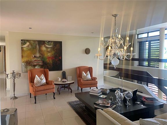 If you are looking for something different, this is it. Grand corner lot in one of the most exclusive neighborhoods on the Island. Split level home with living and bedroom areas on main floor.Open tropical style architectural design with abundant natural light and cross ventilation. Formal and informal living room and dining room areas. Splendid covered and uncovered terraces with scenic view of beautiful garden and pool area. Double garage plus covered carport and wide driveway. Fully equipped kitchen with granite countertops and laundry and utility area. Three very spacious bedrooms suites and two large bathrooms. Guestroom or studio with full bathroom. Downstairs family/game room with bathroom. Fully equipped / air conditioned. Full power generator, water cistern and storm shutters. Lots of storage space.