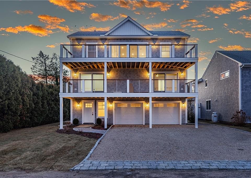 Rare new construction in the heart of Bonnet Shores. Stunning and sweeping views from multiple levels and over 720 sq. ft. of decks that overlook the West Passage over to Beavertail. Just a few steps to the beach! Features four bedrooms, 3 full baths, 7.5 inch engineered hardwoods throughout, Chefs kitchen with luxury appliances and quartz counters, central air, ship lap accents, oversized 2 car garage.