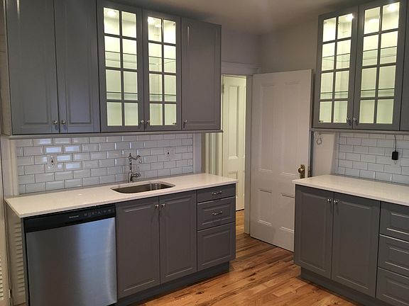 Charming 4 bedroom 1 and 1/2 bathroom second floor apartment in two-family house, beautifully renovated! Formal dining room, high ceilings, gourmet kitchen with new soft-close cabinets doors and drawers, beautiful quartz countertop and subway tiles, high-end brand new SS appliances, 5 burner gas range. New tiled bathroom( marble tiles) with new double sink vanity. Brand new (Samsung) washer and gas dryer. Brand new: roof, gas furnace, air conditioner units, high efficient tankless water heater ( Navien), new windows, New paint and hardwood floors throughout. 2-car garage and large parking space on the back. Huge storage in the garage and in the basement. Nice grill area on the backyard. Close to everything. Great location for commuters, minutes away from the train station and 95and RT 7. Move-in ready, come check it out today! Tenant pay 1,5 months security deposit, liability insurance, all utilities (except cold water). References and credit check required. Cats and small dogs may be considered for additional fee. Owner pays for cold water, trash. Tenant pays gas, electric