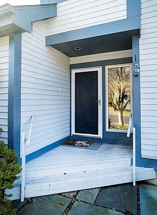 Lovely pond views from all three levels of this "must-see" condo in Bishops Cove. Newly repainted 3 bedroom, 3 1/2 bath home with quality workmanship and thoughtful details. The main level has a large sunken Living Room with woodburning fireplace, vaulted ceilings and upholstered window seat. The Dining Room has a sliding door to deck and vibrant (removable) murals. The Den is finished out with custom wood cabinetry and built-in seat. The sunny eat-in kitchen with freshly finished cabinets features all new appliances installed in April 2017. The lower level is fully finished with one bedroom, one bath and a large living area with sliding glass doors to a patio and potter's bench. Each of the 3 bedrooms has its own bathroom. The condo association has a full time maintenance person who takes care of the landscaping, mowing, snow plowing and exterior of the condo so you can relax and enjoy the clay tennis courts and beautiful pool at the Club House.