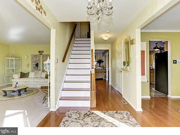 This four bedroom home has all of the classic design, charm and closet space that you are looking for. Hardwood floors run through the foyer, dining room, den, up stairs and through hallways. Formal living room and all 4 bedrooms are carpeted. Eat-in-kitchen offers a breakfast bar, a large pantry closet, has new laminate flooring and view of the backyard from the kitchen table. Den with wood-burning fireplace just off the kitchen. Master bedroom suite has 2 walk-in closets with double doors that lead to the over sized master bath with soaking tub and a stall shower. Laundry room on main level. Newer HVAC (2012). Full basement. Paved walkway along side of house enters rear yard which has a patio and pond. Two car garage with inside access.