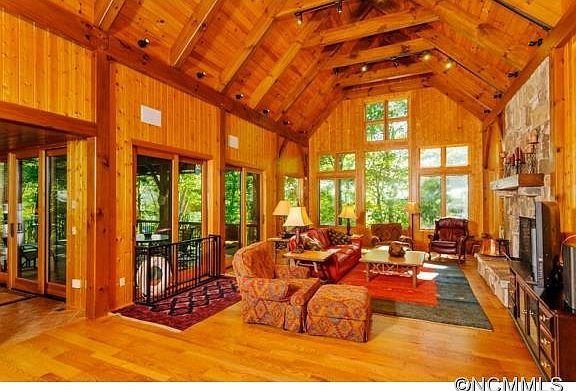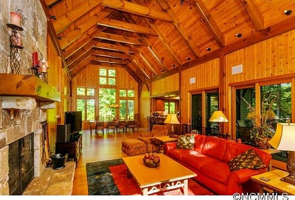 Gated estate with privacy and convenient location.Nearly 6 acres,views,a short golf cart ride to the club and take the path from your door to a private dock on 65-ac Lake Cardinal.Designed by Platt, this 5,000 sq ft post&beam lodge has an open great room, native stone fireplace and a chefâs kitchen.Huge master suite with an office with fireplace and private porch.Plus a guest room and 3 BRs up. Down is a rec room and tons of storage.