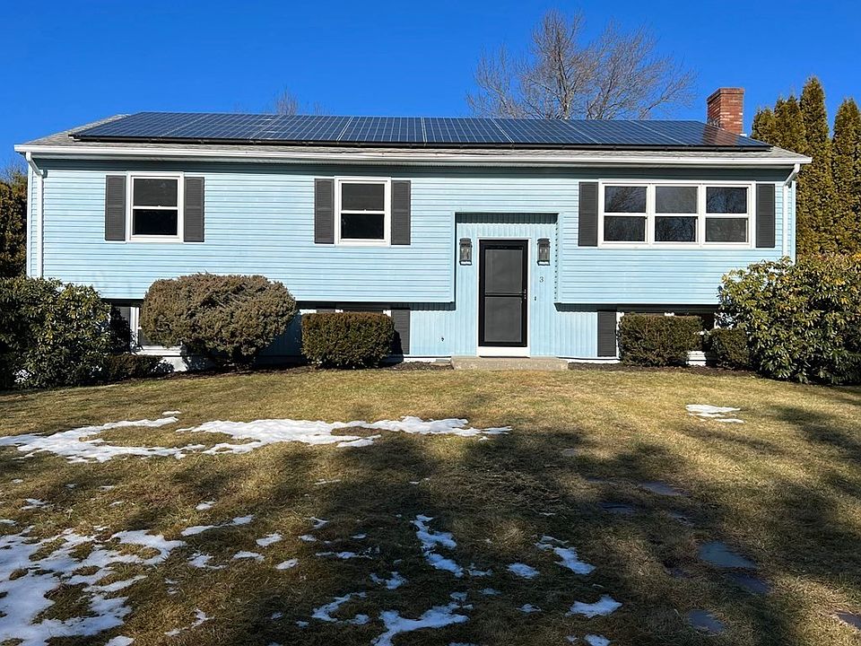 Completely move in ready home on a cul-de-sac in desirable area of Auburn! A meticulous 3 bedroom split level home settled on almost an acre of land! Bright kitchen with new stainless steel appliances, countertops, and walk out to a large deck overlooking your private backyard: perfect for families; large, flat and tree lined! Impressive front to back living/dining room with fireplace. Three bedrooms with new flooring, paint, and good size closets. Beautiful bathroom with gleaming tile work. Downstairs you will find another family/living room with additional fireplace. Large bonus/mud room equipped with double closets for your washer and dryer. One car under garage. Solar panels make heating costs almost non existent! Shed for extra storage in the backyard. Nothing to do but move in! Easy to show. All solar documents will be made available to new owners.
