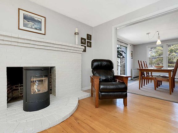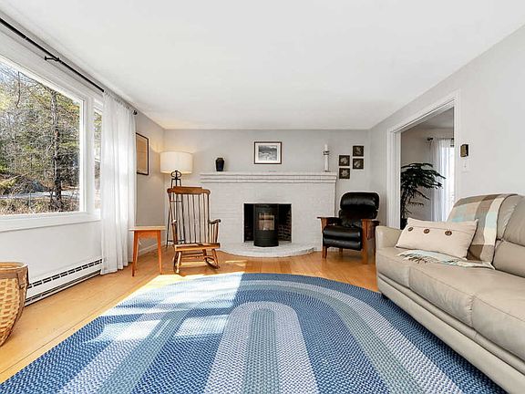 A wonderful home in a terrific location- close to town and with a large yard with plenty of space for outdoor entertaining, gardening, and play. Spacious kitchen with freshly painted white cabinets, newer counters, and stainless appliances. The dining room has a slider that opens to the side yard patio and the living room has a large picture window and a brick hearth with a Morso woodstove- both rooms with beautiful ash floors. The primary bedroom has a full bath. There is a large family room in the daylight basement has a hand-crafted built-in bookcase, an additional woodstove, and a slider to the extensive slate patio in the back yard. A laundry room and two additional partially finished rooms currently used as a workshop and for storage. New exterior paint in 2020. Two car garage and a greenhouse that has been refurbished. The beautiful perennial gardens will be blooming soon and the stone walls and walkways add to the property's charm.