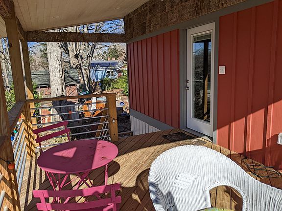 2 year old free standing garage apartment in desirable West Asheville! Studio set-up with open, flowing floor plan. Approximately 500 sq ft above, with fully heated 500 sq ft garage and storage space below, including utility sink. Covered deck, stainless appliances, open shelving in kitchen and much more! Call Jeff for more details and to schedule a showing. $1,250 per month rent includes water, sewer and trash pick-up. Pets on a pre-approval basis with non- refundable pet deposit.