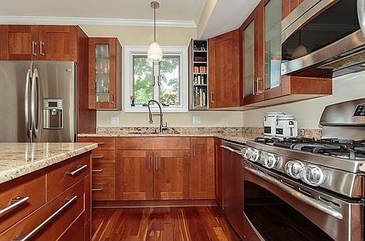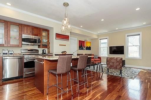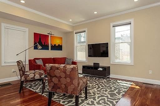 Stunning three-level home hidden away on a private gas lit way! Meticulously renovated in 2010, this home has all the amenities that you need! Main living area is an open floor plan with windows on three sides and a 1/2 bath off the kitchen. Granite and stainless kitchen with cherry Shaker cabinets and a French door refrigerator . There is a high top island that accommodates four stools. The kitchen leads to a deck and landscaped parking lot that can be accessed via Bartlett St. There are two bedrooms upstairs, both with en-suite bathrooms. His and her closets in the MBR, one a walk-in. The master bath has a dual marble vanity, a glass enclosed shower, and heated towel racks. The second bedroom has built in closets and a bathroom with a tub. There is a W/D in the hall closet. The basement level is entirely finished and can be used as a third bedroom with en-suite bathroom or as a family/media room. Lovely detail and craftsmanship throughout this modern feeling row-house.