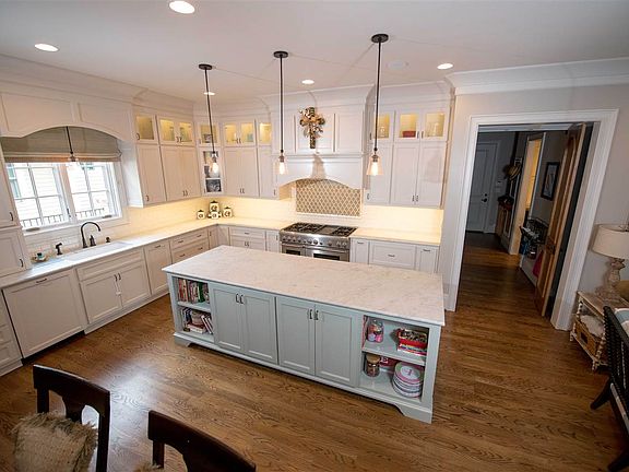 - KITCHEN DESC: Eat In Kitchen, Pantry, Crown Mold, Smooth Ceiling, Window Cov, Wood Floor, Kitchen Island, Recessed Lighting, Wet Bar, 10? + Ceiling, Marble