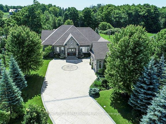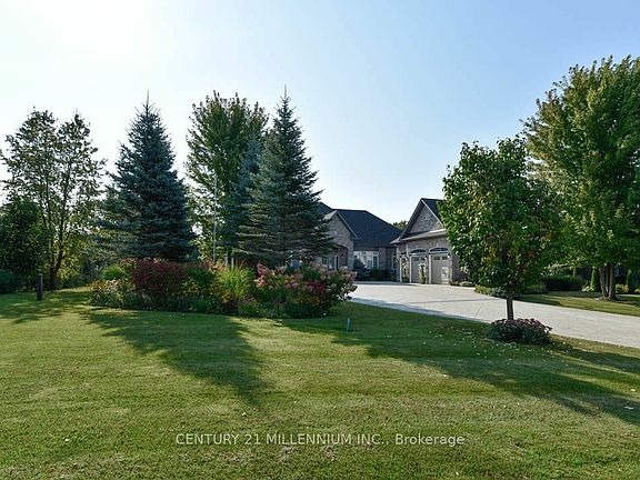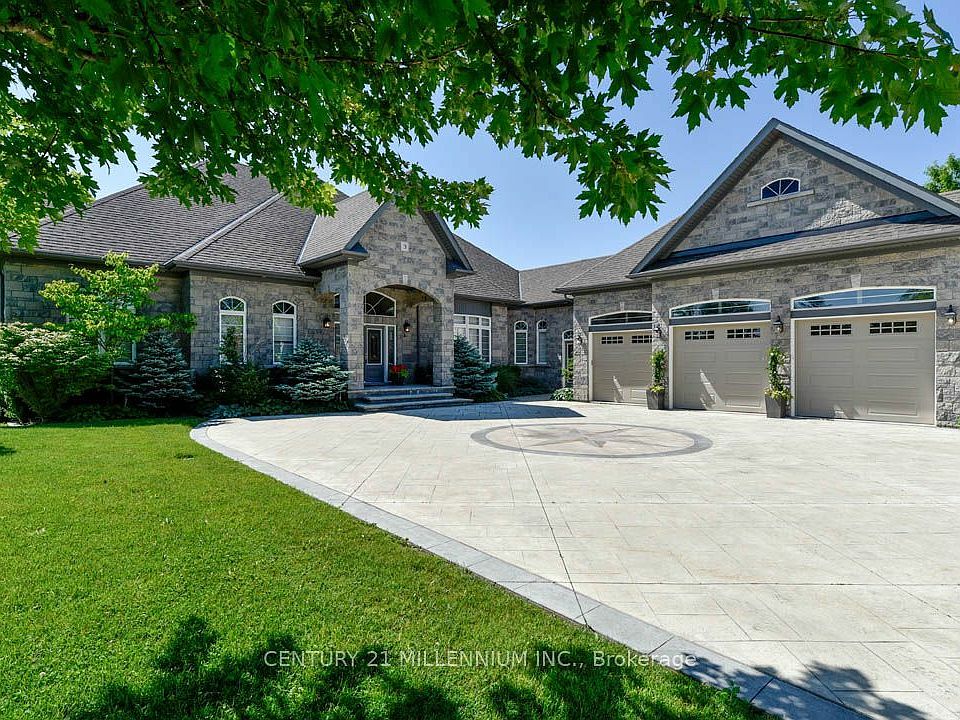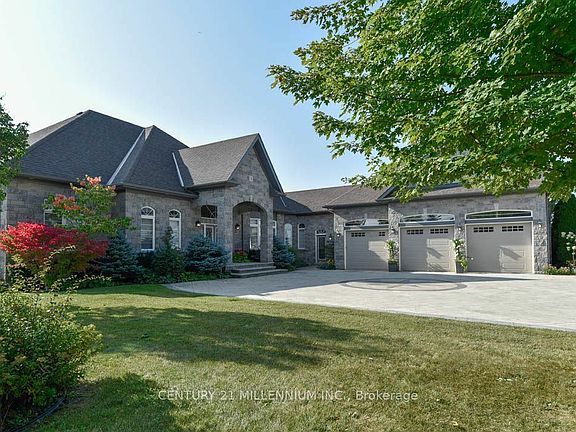 Located on a quiet country cul de sac, with fabulous curb appeal, set on .92 of an acre lot, this custom, quality appointed, 3+1 bedroom stone bungalow offers approximately 3600 square feet plus a fully finished basement. Constructed by the builder for his own use, this property features patterned concrete walkways and driveway with stone entry and pillars, gorgeous perennial gardens, a garden shed with hydro, grand Foyer entry, main floor Office, a stunning Great Rm w/cast trims, wall unit & gas fireplace, coffered ceiling, a formal Dining, a large composite deck located off the chef's Kitchen, and an oversized 3-car garage with 9 ft. doors and separate entry into the basement. The ceilings on the main level are 10 ft. and offer crown moulding, pot lighting. Beautiful rounded corners and archways, high trim and baseboards. The bright lower level offers 9 ft. ceilings and pot lighting and features a large Rec room with wet bar, and woodstove with stone surround, Theatre Rm (potential additional bedroom) w/ built in cabinetry, projector & screen, 4th Bedroom with 4-piece ensuite, garage access, multiple storage rooms & a wine cellar. Quality craftsmanship and impeccably maintained! A 5 minute drive to Mount Alverno Luxury Resort, Sonnen Hill Brewing, Hockley Valley Ski, Spa & Golf Resort Plus Winery, the Bruce Trail & more!