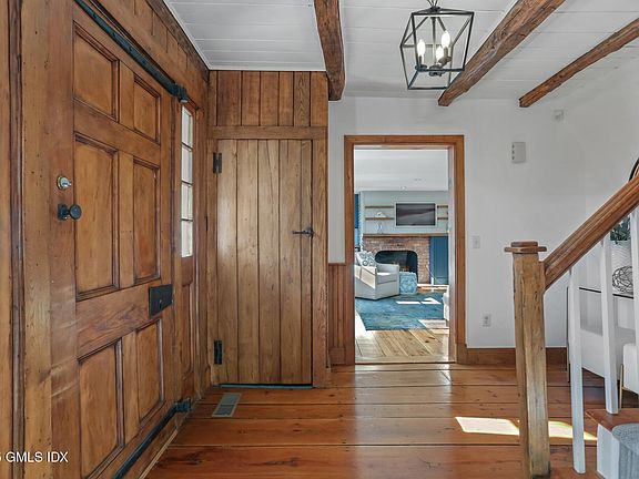 Classic center hall antique colonial, originally constructed in 1794, has been beautifully renovated, tastefully expanded, and well maintained and is now poised to be passed on to the next fortunate owner. Among the many striking features include exposed hand hewed oak beams, wide plank pine flooring, and a soaring two-story stone fireplace. The recently renovated kitchen with custom cabinetry, granite countertops, and high-end appliances opens onto a large family room with a second fireplace. The spacious primary bedroom boasts cathedral ceilings, a large walk-in closet and spa-like bath. The home's expansion was designed by Jay Haverson of Haverson Architecture & Design and accomplished using high-end building materials such as Marvin windows and custom designed antique doors. Situated on a unique and oversized half-acre plus lot makes this convenient close-to-town home feel private and secluded. The oversized lot, coupled with the benefit of town sewer services, also offers up to 2000 sq. ft. of further expansion possibilities. Truly an amazing opportunity in today's real estate market.