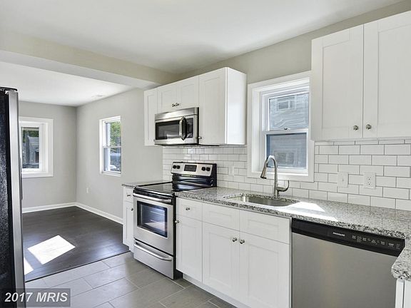 Buyers come view this renovated beauty! All brick 4BR, 2BA home w/a cool modern vibe. LR w/new laminate flooring flows to all white Kit w/porcelain tile floor, granite, subway tile backsplashes & stainless steel appliances. 2 main level BRs & Hall Bath. 2 additional BRs on 2nd Floor. Lower Level FamRm & full Bath. All new utilities, 20X10 Deck, detached 1-car Garage, great flat back yard.