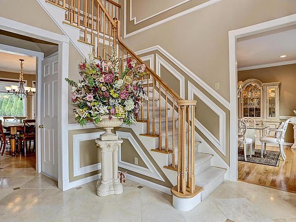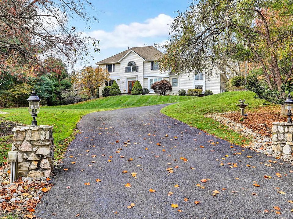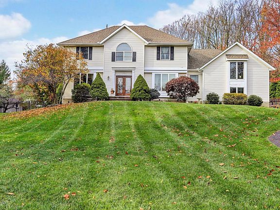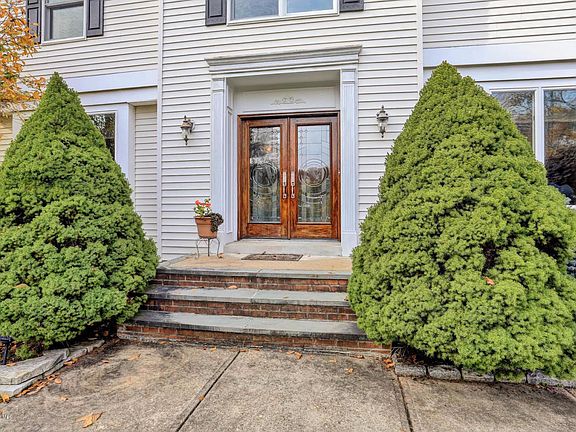 New price on this wonderful home.Beautiful south facing center hall colonial situated on a perfectly groomed .9 acre of land.Owner has over $100,000 in improvements in this lovely home.Features include upgraded kitchen w/stainless steel appliances,crown molding and pantry,custom double glass front door,natural stone flooring in two story foyer,9'ceilings on first floor,ornate crown molding throughout,over 50 recessed lights,landscape lighting,3 newer garage doors,silestone vanity tops in upstairs baths,custom window treatments,Hunter Douglas custom color blinds,new carpet,freshly painted.Truly move in ready home.