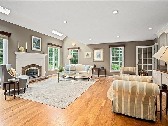 FAY ACRES*Premier cul-de-sac lot deep within the subdivision w/vast lawn & wonderful treed backdrop*Stunning & Crisp gleaming white colonial w/custom half-round Sunburst pediment over front door & custom shutters for that Currier & Ives feel in meticulous condition*Welcoming large Foyer w/sweeping hardwood stairway is flanked by formal DR & formal LR/2nd office or music room w/French doors*Rear of the house offers white painted Kitchen w/leathered granite, new appliances, glass tile backsplash, large eating area & pantry as well as vaulted & skylit fireplaced FamRm packed w/gorgeous custom built-ins - all with finished-in-place hardwood floors*Mudroom 2nd entry door leads to 1st flr Office overlooking the rear yard*2nd level has romantic Primary Suite w/dreamy walk-in closet, vaulted & skylit bath w/new quartz vanity, closeted toilet & glamorous soaking tub, 3 add'l Bedrooms w/hallway bath & large laundry room*Lower level has a GameRm w/new carpet*