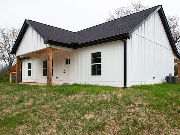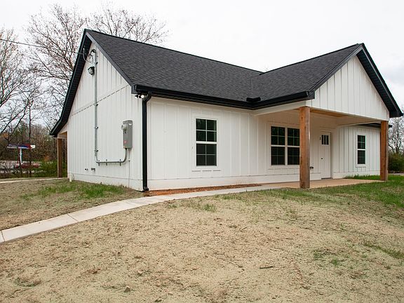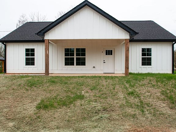Welcome to this stunning new construction home, nestled on a serene creekside lot. Boasting timeless Hardie Board & Batten siding, this 3-bedroom, 2-bathroom home offers the perfect blend of modern comforts and natural beauty. The home is built on a concrete slab foundation, with concrete sidewalks leading to the spacious concrete driveway and 2-car carport, also could function as a covered pavilion. Enjoy the charm of cypress posts adorning both the front and back porches, with the back porch offering picturesque views of the creek. Inside, you'll find custom cabinetry throughout, paired with elegant granite countertops. The master suite features a luxurious walk-in tile shower and spacious walk-in closet. The kitchen includes a walk-in pantry, and the home is equipped with a dedicated laundry room. LED canned lighting and modern ceiling fans illuminate the space, while LVP flooring flows seamlessly throughout, with tile in the bathrooms. Located just minutes from town and essential conveniences, this home combines style, functionality, and the tranquility of nature.