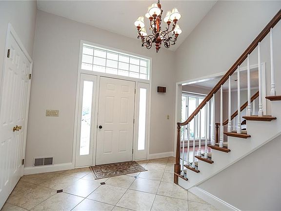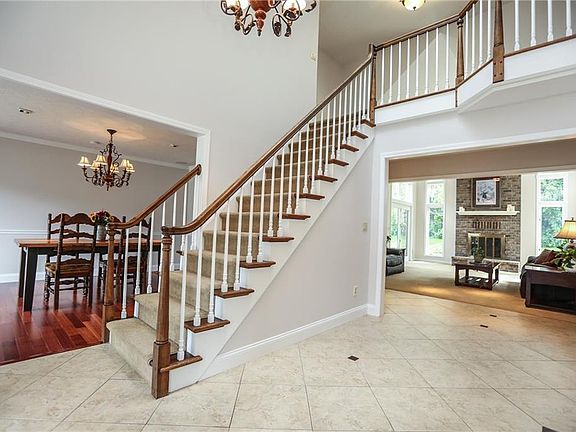 5 acre cul de sac lot! Over 3100 sq ft plus an additional gorgeous finished basement complete w/ 110 gal fish tank (fish included) built-in cabinets & wet bar & surround sound. Two story foyer w/ gorgeous 18" tile. Beautiful Brazilian hardwood flrs in the formal dining room. Bright, spacious family room w/ cathedral ceiling & wood burning fireplace. Amazing kitchen w/ six burner gas stove, cherry cabinets, granite island & counters, breakfast bar, built-in desk/hutch & walk-in pantry. Huge mud room area w/ built-in cabinets. Nice sized living room, plus office area. Master suite w/ trey ceiling, built in cabinets, TV center & walk-in closet! Whirlpool tub in the master bath! Large newly stained rear deck w/ pond & waterfall! Fresh neutral paint throughout.