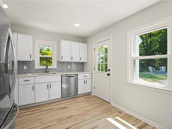 Check out this fully renovated Cape-style home in this Newtown neighborhood ideally located for commuters in all directions. Thoughtfully & purposefully designed the overall floorplan nicely maximizes available space. The main level features an open flr plan with beautifully refinished white oak hwd flrs complimented with light stain. You'll appreciate a completely recreated Kitchen featuring stunning white marbleized quartz countertops & island serving as its beautiful centerpiece adjoining the Dining area; fully equipped with all new stainless steel appliances & fixtures. Light & bright living areas enjoy recessed lighting combined with newer energy-efficient windows providing plenty of added natural light. Modern design influences include the LivRm shiplap statement wall & completely remodeled Baths using tasteful combinations of neutral color palettes & stone finishes. The exterior landscape design incorporates natural stone walkways & split rail fencing amidst an easy-care combination of perennials blending with natural rock formations and ground cover. Weekends & weekdays, relax in your choice of a crushed stone patio or firepit areas. Family and Friends will appreciate ample off-street parking. Other home improvements include adding new insulation, mechanicals, and electrical system upgrade; all of which should yield immediate utility savings. This well-crafted & constructed home is a strong contender among comparable homes for sale, so dont hesitate to act quickly.