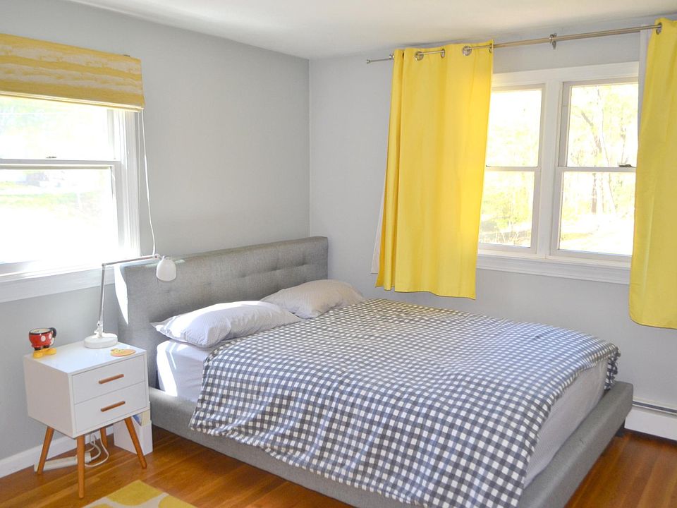 Beautiful, Peaceful North Facing Home: 4BR + 2 Bonus rooms!! (Sun room - Orange in pictures; Downstairs Quiet home office - the one with green built in bookcase) * Beautiful Roman Blinds in all rooms included in the rental. Colors according to Vastu (Feng Shui of India). * King bedroom set (dresser and extra huge wardrobe) and a queen bed installed and included * Exercise bike installed and included. * Shoe Rack on the entrance is included * Modern crockery stand installed and included in the dining room CAN REMOVE ALL FURNITURE IF NEEDED Very quiet and private natural setting-A Retreat of a Home Available. More than just a home, a place for your relaxation and rejuvenation by the Nature that surrounds this home. This property sits on the end of a small cul-de-sac. Almost 1.5 acres of plot, mostly lush green conservation land (part of private property and owned by 3, Cedar Lane). A vernal pond sits on the conservation land. It is very active in spring and summer months with amazing biodiversity and frog sounds that transport you right into the Amazon! Amenities Very quiet and new stainless steel Bosch dishwasher New stainless steel refrigerator Large and efficient energy saving stainless steel washer and dryer in the Laundry room. Home features Our cozy New England home is a classic with colorful Mid Century Modern decor. The home was styled using a Vastu (Indian form on Feng-Shui) consultant so the colors uplift the Energy of the room and the direction it faces (e.g.: North for water and the decor is blue; south for fire and colors are orange). The windows have beautiful custom made matching (as per Vastu shastra), roman blinds that defer the need for any wall hangings. They are INCLUDED in the rental. The living room [North Facing] has plenty of seating to watch your favorite program on your SmartTV (including Netflix) with a wood burning fireplace and a piano. The sunroom is a beautiful orange especially in the evenings or for large parties as an overflow room. It can be a perfect office space with sunshine pouring in. Desk installed. Very inspiring, overlooking the conservation land and lush green. Work in Peace. That opens to the covered porch, a heavenly landing in summer months. Walk out the porch to the pacifying balcony and realign to the lush new england views. The large master bedroom has a high-end king bed and large mirrored closet and dresser with ample storage space (INCLUDED for use by tenants). Upstairs bath is equipped with a large shower & bathtub. The second bedroom fits a queen bed and the room is facing the lawn. Our third bedroom is a kid's room with a chalkboard wall for fun. Fits a twin bed and a dresser for a child. Fourth bedroom is a large room downstairs. Currently being used as a ping pong room. There is also a large office downstairs with doors that can be closed for privacy, perfect for working remotely. This room has a built-in bookcase, a second wood burning fireplace. A standing (or sitting) desk. It has been used as our temple/yoga room and occasional at home workspace. There is a full bath downstairs with shower. Also, can be used as a great guest/in-law suite! Currently it is available for August 1, 2023 One covered car garage and ample private parking in the long driveway. Convenience 1. It is a 7 min drive to Whole Foods and Bedford downtown and restaurants 2. It is a 12 min drive to nearest Trader Joe's and Burlington downtown and restaurants 3. Bedford Public Schools are some of the best in the state and country. Davis School is a short 3 min walk and Lane School bus stop is a quick walk. Bus service is free of cost 4. Bedford town has several recreation activities for kids and the Rec center is only a 3 min drive 5. Bedford Public Library is a 3 min short drive 6. Evening/ Morning walks in the residential area are a treat: walking paths with beautiful tree lined streets. Close to some scenic trails. 7. Dog park is a 1 min walk (if you have a dog) Please note that no recreational vehicles, campers, motor homes, or boats are to be kept on or about the property per regulations. Strictly No smoking. Pets a consideration. Only serious inquiries. Preference to families. * Marilene was a wonderful and trustworthy housekeeper that I used for cleaning and laundry (she folds and keeps them in the room!! Angel). She is very sweet, can chop/peel vegetables etc if you need for dinner that night. When she comes for laundry, she cleans the kitchen, makes beds and cleans the staircase etc. What more! * Rent of $4100/month for a 2 year lease All utilities paid by renter Pets a consideration Strictly No smoking inside