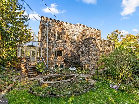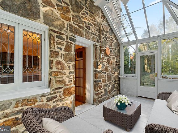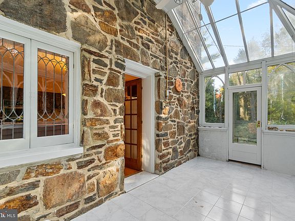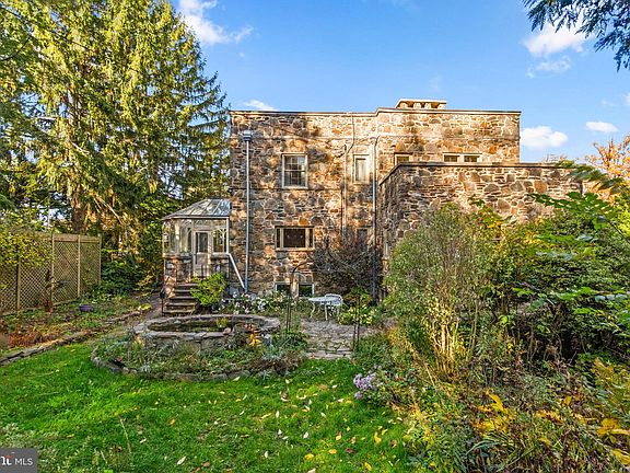 Elegant stone residence brimming with character, offering 3 bedrooms, 2 full bathrooms, 2 half bathrooms, and 3,381 finished square feet in Historic Towson Estates. This enchanting home showcases storybook curb appeal, with lush garden-lined pathways, a Juliet entryway, and timeless architectural details that hint at its rich heritage. Step inside to find hardwood floors flowing through the traditional main level. The foyer opens through French doors to a spacious living room featuring a stone-accented wood-burning fireplace and built-in bookcases—a perfect blend of warmth and sophistication. Opposite the foyer, the formal dining room impresses with vintage wallpaper and an elegant chandelier that complements the home’s historic charm. The large eat-in kitchen exudes character with granite countertops, a decorative backsplash, and rich cherry cabinetry offering ample storage. From here, step into the sunroom, a captivating retreat enclosed in panoramic glass windows, creating a light-filled sanctuary that brings the outdoors in. Upstairs, hardwood floors continue throughout three bedrooms, including an expansive primary suite with double closets, a private sitting area, a loft with balcony access, and a spa-like en suite bathroom. A second full bathroom serves the additional bedrooms with equal charm. One of the bedrooms has a private balcony. The lower level is a treasure of its own, featuring a recreation room with hardwood floors, stone walls, a second stone fireplace, and exposed beams that showcase the home’s craftsmanship. Two bonus areas with built-ins, a half bathroom, laundry room, and a former darkroom provide character-rich versatility. Outdoor living is equally magical, with meandering stone walkways, vibrant gardens, and a stone fish pond, all set against a wooded backdrop for added privacy. A two-car garage and private driveway provide convenience and ample parking. Nestled within Towson Estates, a neighborhood celebrated for its old-world charm and early 20th-century architecture, this residence is part of a community where stone walls, gardens, and fountains create a picturesque, timeless atmosphere. The neighborhood association is dedicated to preserving its historic integrity, ensuring each home retains its distinctive character. Tucked away on quiet, no-through streets, yet just minutes from shopping, dining, major commuter routes, and amenities, this home offers the perfect harmony of history, privacy, and convenience. *Property is being sold As-Is, Fireplaces are decorative only, not usable. Furnace/Boiler and Water Heater recently replaced (gas; chimney liner installed)