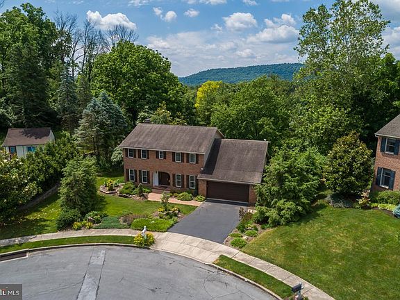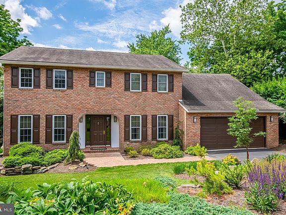 Situated at the end of a cul-de-sac in the popular Crestwood development sits this beautiful brick 2-story home with 4 bedrooms, 3 full, 2 half baths, including a spectacular, heated in-ground pool on almost a ½ acre lot! Upon entering this stunning home you will be greeted by a tiled foyer, to the left is a large formal living room with recessed lighting and crown molding. To the right, an exceptional formal dining room with built-in cabinet. The updated kitchen has a center island for additional storage, granite countertops, convenient lift up mixer attachment and roll out drawers in many cabinets, stainless steel appliances, including a double wall oven, built in refrigerator and double drawer dishwasher, as well as tasteful tile flooring and backsplash. The breakfast nook will be the perfect place for informal dining and has access to the large rear deck. The spacious family room is perfect for entertaining and has a beautiful gas fireplace, wood flooring, recessed lighting and partial cathedral ceiling with a wall of windows which warms the room nicely, as well as access to the rear deck. The main level also has a laundry room with tile flooring, laundry sink, outside access and tons of storage and there is a powder room. Upstairs, you will find a lovely primary ensuite with a cathedral ceiling and recessed lighting and the primary bath has a large double vanity with lots of storage, radiant floor heating, a corner soaking tub and large tiled shower. There is a 2nd ensuite bedroom with recessed lighting, crown molding and a bath with a double vanity. There are two additional spacious bedrooms and a large hall bath with a double vanity. The lower level recreation room, with built-in, adds additional living space and there is a powder room and storage area as well. The outside of the home will be your own private oasis with a large deck with built-in seating and retractable awning, a large, heated inground pool and lovely, professional landscaping. There is a 2-car attached garage, driveway parking and solar panel heating. With convenient access to all amenities, you will be happy to call this your new home!