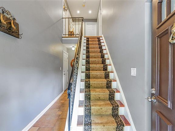 Just unpack and move into this beautiful 3 bedroom, 2.5 bath town home, the largest town home with lots of living space! 2-story entrance, spacious living & dining rooms, remodeled half bath, large remodeled kitchen with corian counters, custom back splash, resurfaced cabs, stainless steel appliances, new stove, large open pantry, french patio door. Vacation-like fenced yard with stone paved patio, outdoor stone fireplace, and fire pit. The 2nd level includes 3 master-sized bedrooms plus 2nd level den (used as a 4th bedroom with skylight) and 2 full baths. The master suite has remodeled bath with custom tiles/solid glass shower door. Hardwood and ceramic tile floors, custom lighting and window treatments, freshly painted. Gorgeous new finished basement recreation room boasts laminate flooring, sheet rocked walls and recessed lighting. 2019 A/C.**EZ Commute..Midtown & Wall Street Express bus stop in front of community** Pool requires $300 annual fee.