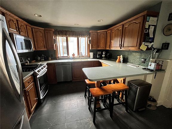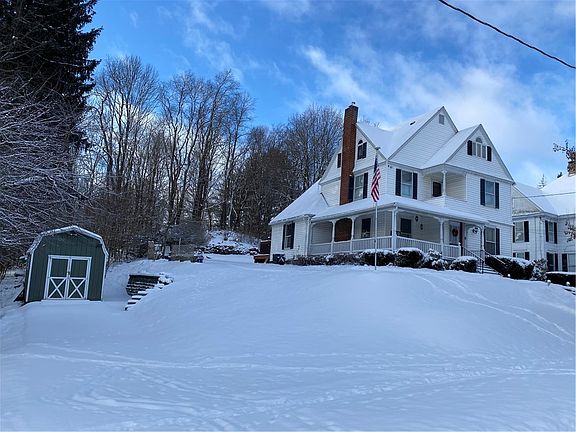 Introducing a turn-key gem located in the upstate Village of Oxford, NY! Perfectly located within walking distance of the vast number of restaurants and businesses of downtown Oxford, plus, the Bluestone Golf Course. The property features a majestic wrap around front porch. The back side of the property offers a hot tub that sits on a large deck, with composite flooring, to relax while enjoying nature in the private back yard. Upon entering, you'll walk into a large mudroom, w/lots of storage. The kitchen offers newer appliances, Corian countertops and connects to a spacious dining room. The first floor offers a large living room with a gas fireplace and an additional family room, each with hardwood floors. The first floor also offers a bedroom (or office) with its own half bath. As you travel to the second floor, you will find three large bedrooms and a full bath. The hardwood floors continue throughout the second floor as well. Up to the third floor, find a private suite, full bath. central air to keep you cool in the summer. Two paved driveways, One leads to the detached garage with electric and the other leads to a 10 x 16 storage shed, which is in wonderful condition.
