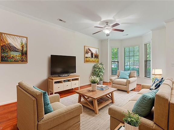 Amazing opportunity to live in a townhome with such wonderful versatile space! Tucked deep into the heart of the community, this townhome offers both privacy at the end of the street, as well as, a great central location within Greensboro. Located just off of Horsepen Creek Road, this home is nearby the new Urban Loop for easy access throughout town. Nearby parks, recreation, grocery, airport, shopping along with hiking and biking trails! Inside, the townhome features 3 levels of living. Bedrooms on the second level, great room and dining room sharing a double sided fireplace on the main with kitchen, half bath and laundry. In the lower basement level, you will find a fabulous multipurpose space featuring a wet bar and full bath. One large space simi-divided that could act as two large rooms such as bonus and game room. Office or additional bedroom. The basement has a walk-out patio and the main level features a deck overlooking a beautiful water view with fountain in the backyard!