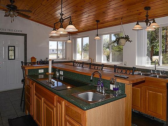 1.75 Acres in Town!! 56X32 Shop completely finished, heated and epoxied floor. Completely surrounded by large mature trees, including greenhouse , sprinkler system and garden areas. Over 4,000 SqFt house complete with 5+ Bedrooms 3.5 bedrooms, mother-in-law suite which could be converted to rental, sunroom, large master bedroom area. Must see to believe kitchen!