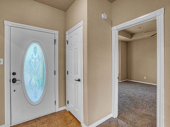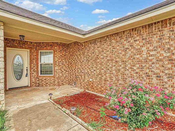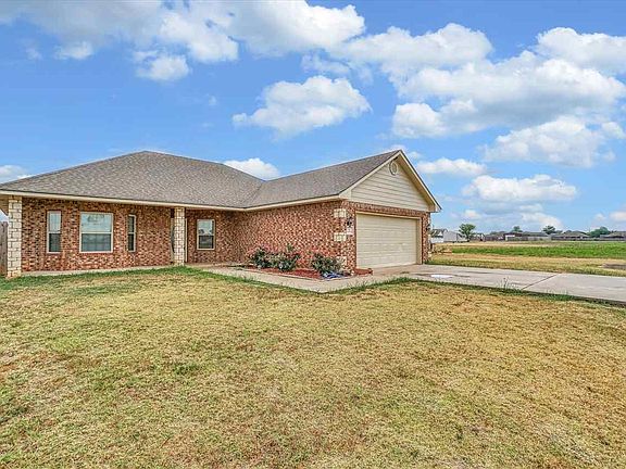 Wonderful home, Small town living. 10 minutes from Lawton, Ft. Sill. Great schools. Freshly painted, covered front porch, nice tiles only kitchen, hallways and both baths. Big open living area. High ceilings, fireplace, great open kitchen and big dining area. Raised panel cabinets, pantry, granite counter tops. Secluded large primary bedroom with walk in closet, whirlpool tub and separate tiled shower, double sinks. Nice sized additional 2 bedrooms. Wood privacy fence & more. Call 580-248-8800 for a showing or text 580-581-7870 for more details.