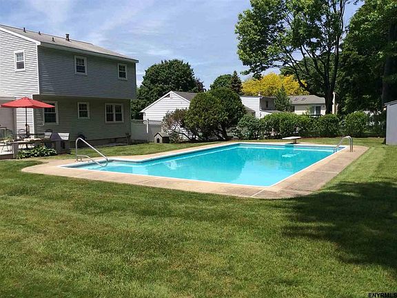 Well kept Colonial in great neighborhood in East Greenbush. The spacious family room nicely flows to a nice deck and the beautiful inground swimming pool. Par quaint floors throughout the 1st floor and hardwood floors on the 2nd floor. Granite counters, stainless appliances and ceramic tile. Roof and windows are 16 years old.
