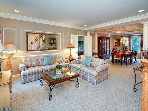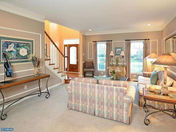 This stunning Concord Chase Cornell model has a Dramatic 2 story foyer w/chandelier that lowers remotely for easy cleaning. The study has custom built-in cabinetry, Formal LR, Formal DR w/tray ceiling & bay window. Step down into a beautiful Conservatory with vaulted ceiling, ceramic tile floor and a wall of windows. The expanded gourmet kitchen has 42" maple cabinets, corian countertops, granite island, & breakfast area that exits to a maintenance free deck. The Family Room has a stone fireplace & rear open staircase to the 2nd floor. Master bedroom w/sitting room and master bathroom with upgraded master bathroom with dual headed shower and jetted tub. The 2nd bedroom has a full bath and the 2 additional bedrooms share a Jack & Jill bathroom. The finished basement offers additional living space. The serene backyard is private with a large Trex deck, gazebo and mature landscaping. This beautiful home is located in Concord Township & served by Garnet Valley schools.
