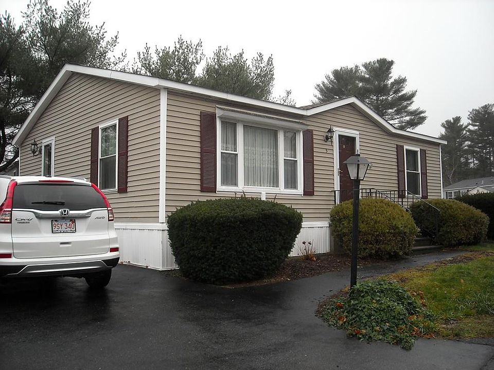 This property is in a convenient location to shopping, churches, highway, library, town offices and post office. Monthly fee of $560.00 covers snow removal of street, not driveway, rubbish pick-up, Title 5, and taxes. Cable is with Comcast. There is a club house. Kitchen dishwasher is brand new and stove is less than 6 months old. Some of the windows are new. New wall to wall carpeingt in living room, bedrooms, and hallway. Washer and dryer are staying with the property. This 55+park has the first right of refusal for this property.