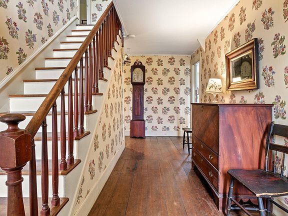 Tyringham is arguably the most beautiful place in the Berkshires. The majestic east-west valley has retained its historic character, with antique homes nestled among rolling farm fields and gently sloping hills. Just off Main Rd, on a quiet lane known as Church Road, sits the NorthRUP/ROP-Wilson House. Built in the late 1700s in the Georgian-Federal period, the home underwent a Greek Revival update in the 1830s, giving it a grander, yet timeless appeal. Having had few owners, the home has fortunately retained its original detail and character. Nestled in the middle of the valley, with views of the old school house and hillside cemetery, time seems to stand still here. Imagine the stories told around the grand fireplace, the family dinners, and the generations that have called this place home. A short walk out the front door is wonderful Tyringham Cobble, miles of hiking trails and views. The first floor features a spacious eat-in kitchen that opens to a stone patio perfect for outdoor lounging and firefly spotting. Gather in the formal dining room for dinner with family and friends, below a vintage metal chandelier. A wide central hall with powder room separates the kitchen and dining areas from two additional living spaces. The Green Room offers stunning views of Church Rd, while the Yellow Room boasts a grand fireplace. Upstairs, one finds four more bedrooms - two with picturesque valley views - and a full bathroom. Pass through the Yellow Room to another grand room with a fireplace, an adjoining back room, and an upstairs area with two more roomsperfect for extra space during the summer or perhaps an artist studio. This home is truly for the antique lover - preserve the home's original charm or elevate it to new heights. The house is in good mechanical and structural condition. The rear of the home would require updated HVAC and electric to become four-season living space. Only 5 minutes to grocery shopping, 7-14 min to the great eating scenes in Lenox and Lee, and less than 20 min to downtown Great Barrington.