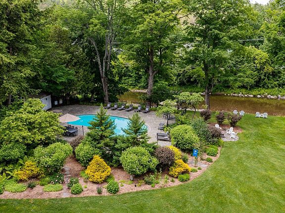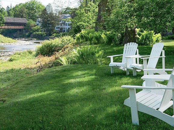 A handsome Federal Greek Revival built in 1831 by Joel Eaton, Three Church Street is at the heart of the picturesque village of Woodstock, voted the most beautiful town in America by Conde Nast Traveler. The house is rumored to have been a stop on the Underground Railroad and local lore has it that General Lafayette slept here. The east wing was added in the 1860s and was a recovery home for civil war veterans. Set on just under two acres with 249 feet on the Ottauquechee River, the exquisitely renovated house has maintained its historical integrity while adding modern amenities such as en-suite bedrooms and air conditioning. The two-acre property has been meticulously maintained and is in exceptional, move-in condition. It comes completely furnished and includes an in-law apartment and guest apartment. An expansive porch looks out over a private back lawn that gently slopes down to the river with views of Mt. Tom. The outdoor areas have a sense of space with the added pleasures of perennial gardens, a heated pool and fire pit. Head out the front door and walk to locavore eateries, theatre, the weekly summer farmer’s market on the Green, shops and the Marsh-Billings-Rockefeller Historic Park with 20 miles of trails to explore on foot, by horse or snowshoes. A day of skiing at Suicide Six or Killington or gravel bike riding on the scenic dirt roads are all close by. Come home. Breathe. Relax. Rock on the porch. Cozy up by the fire. Shown by appt only with 24 hour notice