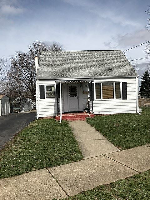 Nice 2 bedroom, 1 bath starter home or investment property. Cape Cod on a good sized lot, new updated bathroom, brand new stove & refrigerator, 1 1/2 size detached garage, built in wall air conditioner, some replacement windows, newer roof, new metal porch roof, cherry kitchen cabinets, sliding glass door to rear screened in patio, & shed.
