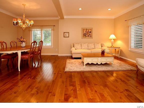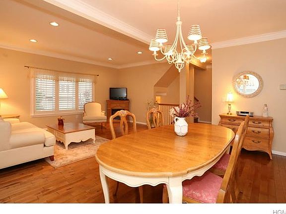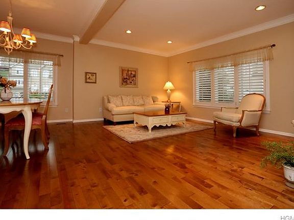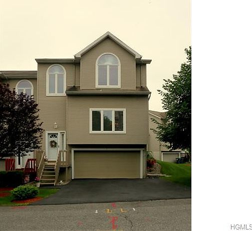 EXTRA-ORDINARY!Beautiful tri-level duplex townhome with thousands in upgrades has everything you could want for!It features pre-finished wood floors THROUGHOUT,tile floors in kitchen and all baths, freshly painted,crown moldings,hi-hat lighting & plantation shutters throughout & new light fixts in baths. Beautifu kitchen with upgraded cabinetry, corian countertops, tile floor, wainscoting, electrolux stove (4yrs old), refrig.,DW and hi-hat lighting.Sliding patio door from dinette leads to oversized(220sf) deck to enjoy morning coffee or dinner overlooking scenic views. Master bedroom with lots of light through circle top window and ensuite bath with whirlpool tub, and vanity with 2 sinks. Finished basement with ceramic tiled floor.2 car garage with extra storage. HWH-2 yrs old. New driveway. Near public tranportation to NYC within an hour. Great recreational facilities in Town. Taxes are full amt. Basic STAR would reduce taxes by $1005.